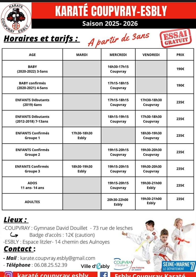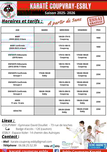 Club de Karaté au Val-d'Europe: Karaté Coupvray Esbly accueille les enfants dès l'âge de 3 ans.
