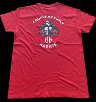 Pour cette nouvelle saison, le karaté Coupvray Esbly offre un magnifique tee-shirt à tous les adhérents! Ainsi vous pourrez porter fièrement les couleurs du club.